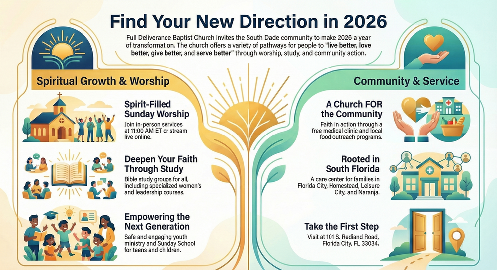 Join Full Deliverance Baptist Church in Homestead for uplifting Sunday Worship Services at 11 AM. Discover Bible Study, Youth Ministry, Women’s Ministry, and Community Outreach at FDBC!